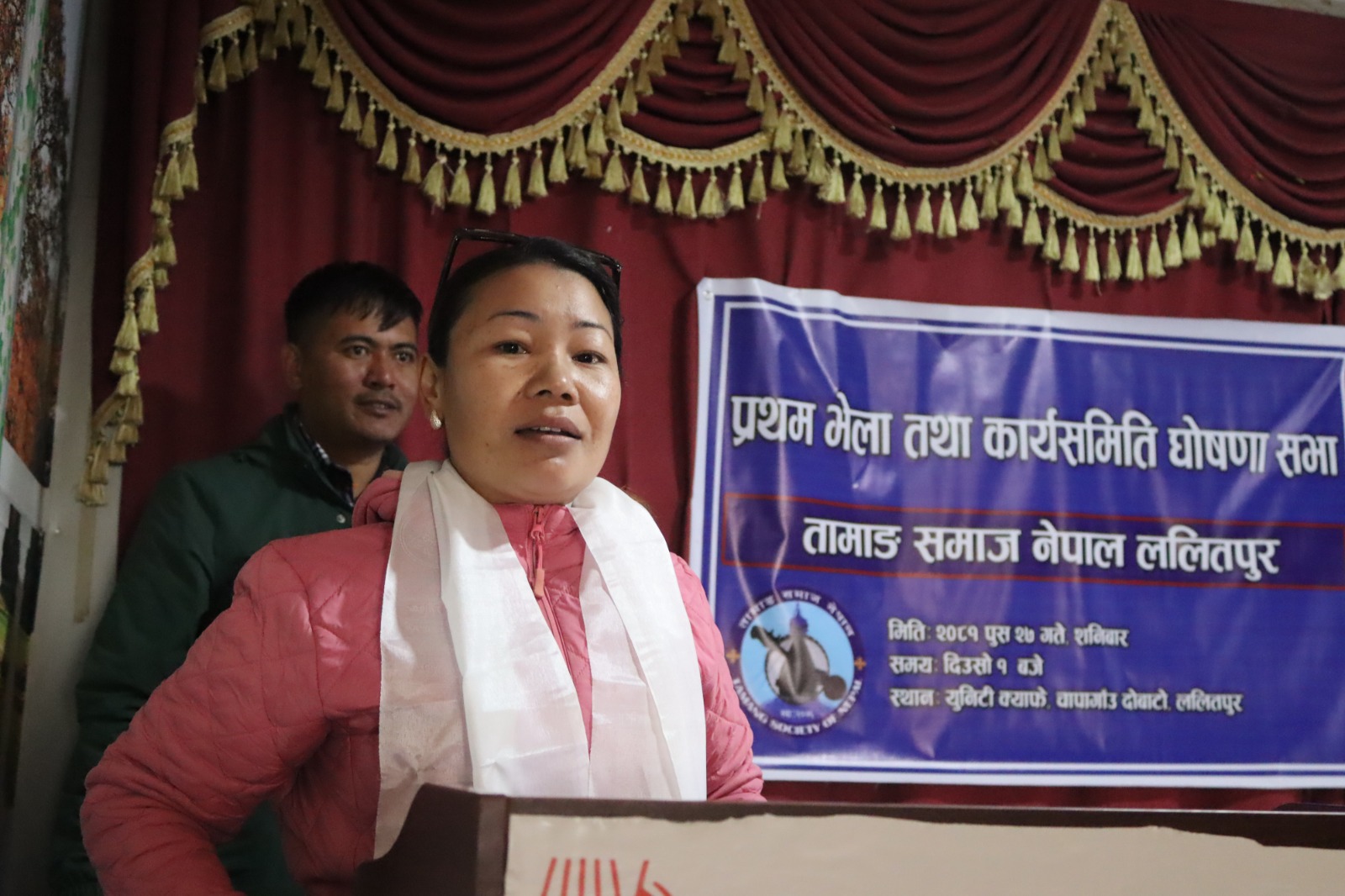 उक्त कार्यक्रममा बोल्दै तामाङ समाज नेपाल ललितपुरका अध्यक्ष सन्जिब सिङ्ग तामाङ्गले भने ‘तामाङ समाज नेपाल ललितपुर म विश्वको कुनै पनि देशमा बसेको थियो भने म पहिला नेपाली भनेर चिनाउथे तर म अहिले नेपाल मा बसेको छु, नेपाली भन्दा पनि म तामाङ भनेर चिनाउँछु अनि तामाङ भित्र पनि १४५ थर छन्, म मेरो स्वागे भाइहरुलाई प्रथामिकता दिन्छु त्यसैले आफ्नो पहिचानलाइ सम्जिन्छु त्यसैले मेरो देशभित्र तामाङ पहिचान बनाउँन चाहन्छु म र हरेक तामाङको आर्थिक, शैशिक परिवर्तन चाहन्छु र माया प्रेम लाग्छ मलाई ।’
